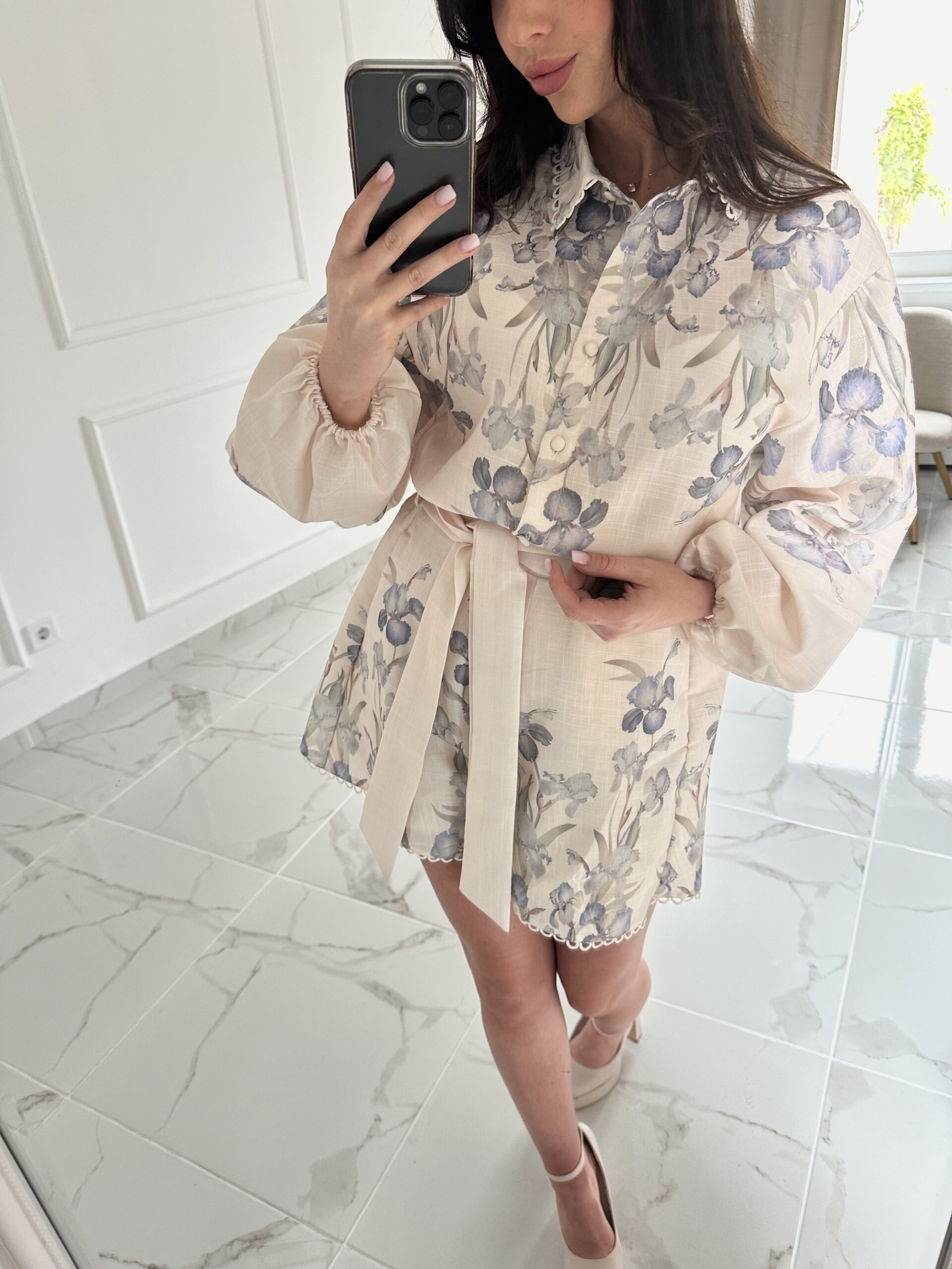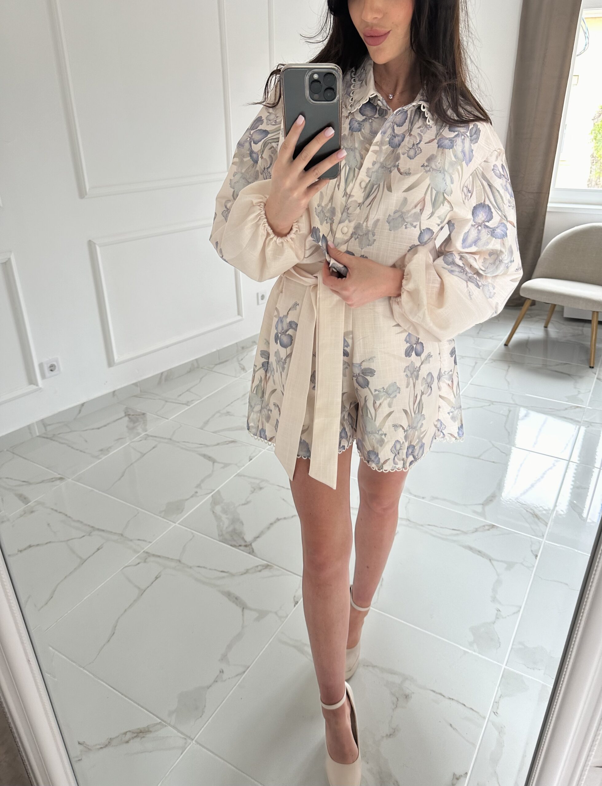 Amit minden nő szívesen viselne: ez a gyönyörű virág mintával díszített short és gombos felső kombinációja. A finom anyag és az elegáns design tökéletes választás azoknak, akik szeretnének stílusosan és kényelmesen öltözni egyaránt. Legyen ez a szett a gardróbod közkedvelt darabja!